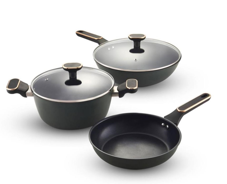 產(chǎn)品配置:炒鍋-30cm 煎鍋-26cm 鍋-20cm 鍋體材質(zhì): 鐵素體型不銹鋼 不銹鋼牌號(hào):10Cr17(430)食品接觸用 產(chǎn)品涂層:聚四氟乙烯(食品接觸用)